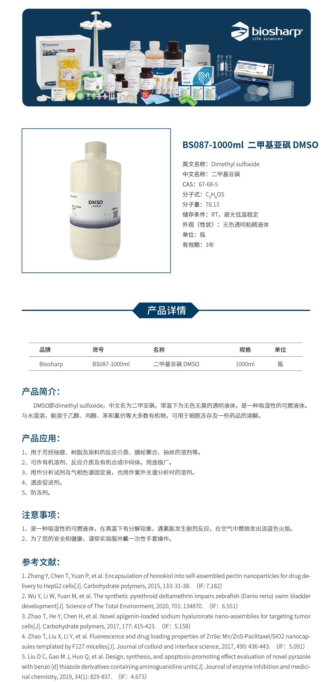 > 白鲨BS087-1000ml 二甲基亚砜 DMSO
