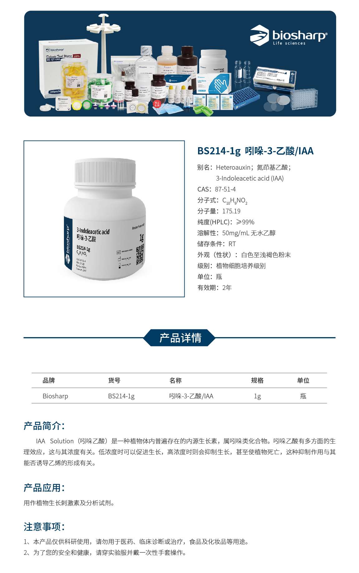 白鲨BS214-1g 吲哚-3-乙酸/IAA