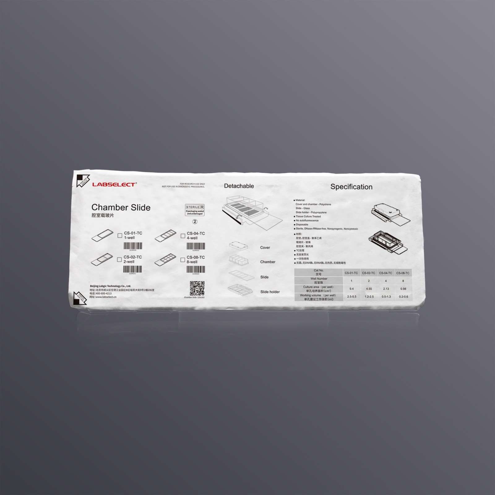 甄选CS-04-TC 腔室载玻片(4孔,TC处理)