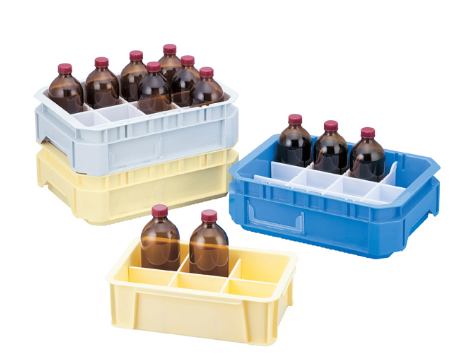 ● 容纳数:φ78mm以下的瓶子(500ml相当)/12个、φ60mm以下的瓶子(100ml相当)/20个(追加横・竖隔板各1张时)、φ110mm以下的瓶子(1000ml相当)/4个